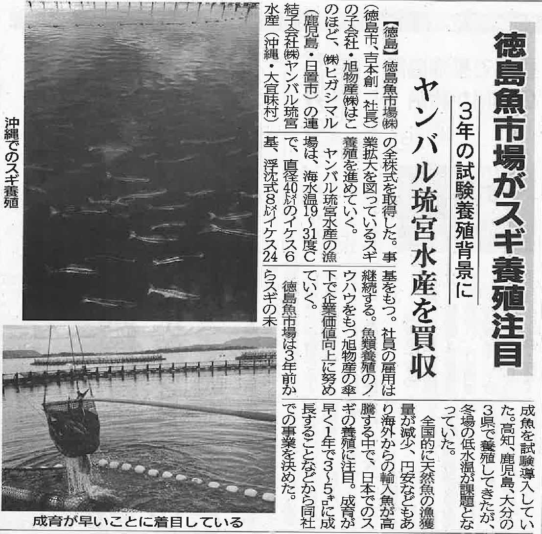 「徳島魚市場がスギ養殖注目」 水産経済新聞